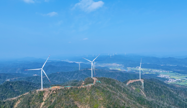 华电福新东至县泥溪风电场位于安徽省池州市东至县青山乡、昭潭镇及龙泉镇境内,总装机容量为150MW,安装38台3.6MW型、4台3.3MW型风力发电机组。该项目于2022年10月建成投产,按燃煤机组折算,年可节约标煤9.2万吨、减排二氧化碳约28.1万吨、烟尘排放114.5吨,二氧化硫排放102.7吨,对推动当地能源结构优化,助力地域绿色和经济高质量发展做出了突出贡献。