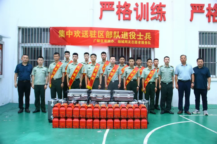 在集中欢送活动中,吴明作了热情洋溢的讲话,对驻区部队退役士兵响应祖国召唤、青春献给军营的精神和为维护社会稳定、人民安居乐业作出的贡献表示感谢,殷切勉励他们回到故乡后继续保持和发扬部队优良传统,永葆革命军人本色,坚定信念,奋发有为,在新岗位上再立新功!随后,区双拥办和扬城网友志愿服务队一起为退役士兵送上扬州特色的慰问品。