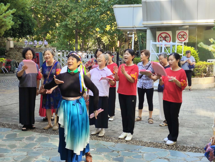 为增加节日的喜庆气氛,社区文艺团队的阿姨们也精心准备了精彩的节目。她们身着各式民族服装,载歌载舞,为老人们献上一首首耳熟能详的经典歌曲和优美的舞蹈表演,赢得了阵阵掌声。
