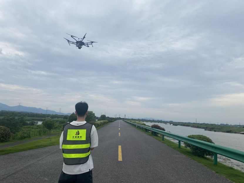 伴随着螺旋桨的低鸣声,一架无人机从浦口宁滁快速通道东葛段起飞,化身“巡查员”开始作业。这是南京浦口交通集团响应低空经济发展要求,率先开启农村公路无人机巡检的探索应用。