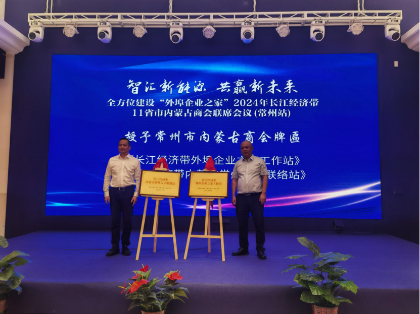 东道主常州内蒙古商会会长高君表示,常州内蒙古商会十分荣幸接下“外埠企业之家工作站”与“长江经济带人才服务联络站”这两块沉甸甸的牌匾。两块牌匾写满了家乡人民的期盼,聚焦了商会的重点,明确了今后努力的方向,深感责任重大,使命光荣。外埠企业之家工作站将以商会为基础, 致力于为来自内蒙古以及其他地区在常州发展的企业打造一个温暖的家,积极搭建交流合作平台,促进企业之间的信息共享、资源整合。长江经济带人才服务联络站将充分发挥商会的桥梁作用,不断拓展各类人脉资源,开阔人才视野,主动与各类高校、科研机构等联络,为常州及长江经济带各地内蒙古企业引进优秀人才。