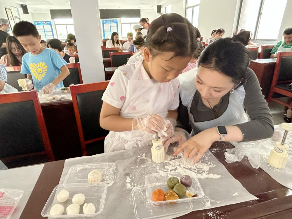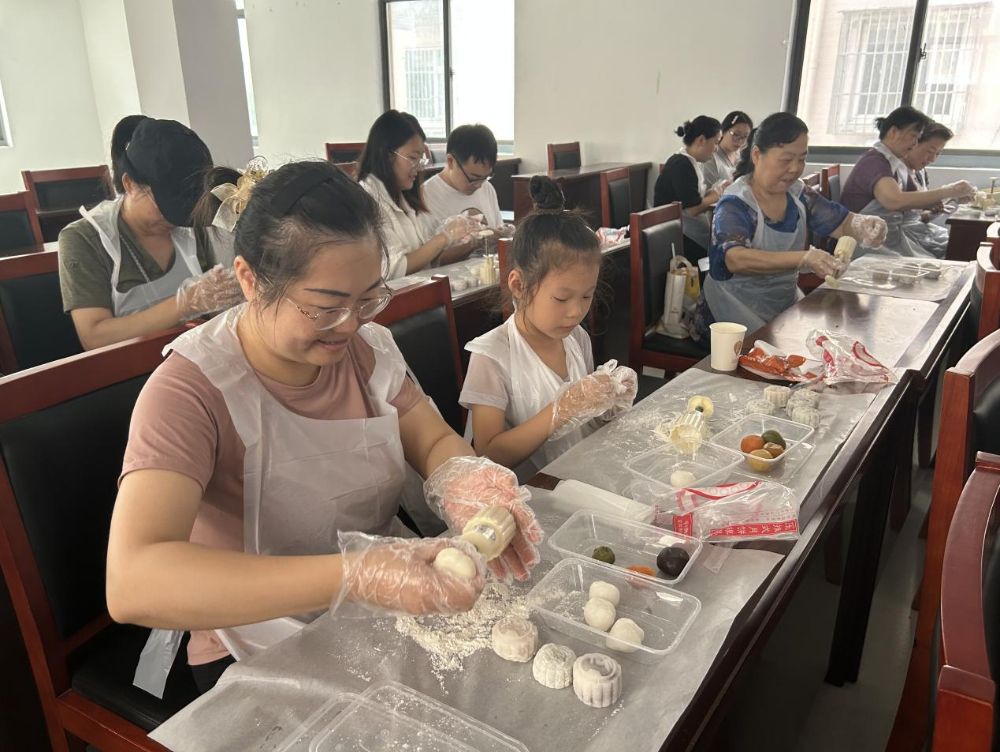活动当天,社区网格员为每组家庭准备了月饼制作材料,包括面粉、馅料、模具等。在专业烘焙师的指导下,家长与孩子们一起动手,和面、包馅、压模,每个步骤都充满了乐趣。孩子们更是兴奋不已,他们用小手认真地制作着每一个月饼,脸上洋溢着幸福的笑容。