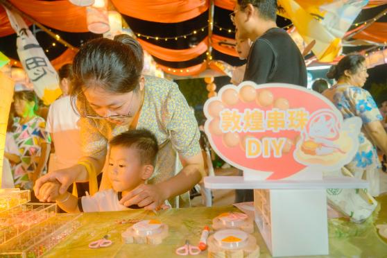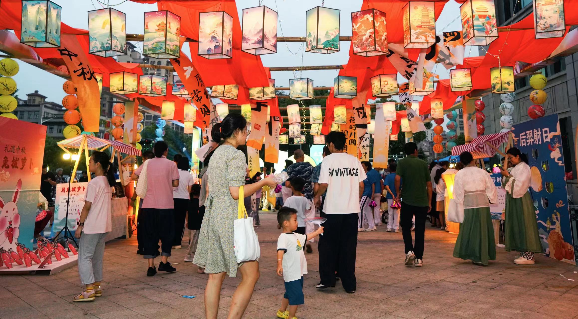 另一边,六个融合了中华文明与异域风情的文化体验摊位也让现场热潮涌动。漆扇轻摇、茶香四溢,居民能体验到来自中华传统文化的独特韵味,孩子们提着月兔形状的花灯穿行在各个摊位之间,大人们则或驻足欣赏,或拍照留念。