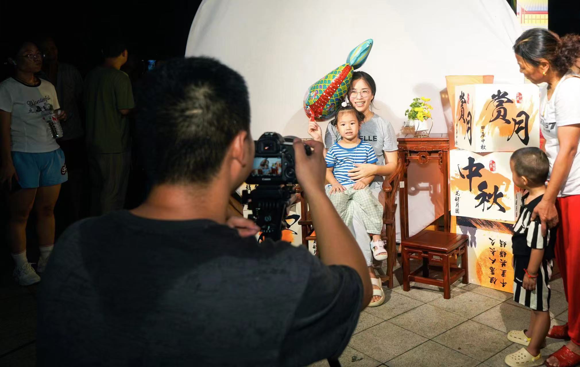 “笑容自然一点,尽量不要眨眼,这张很好!”在全家福拍照区,妈妈正在招呼年幼的孩子拍摄中秋全家福。各个小区分会场的拍照打卡区吸引了不少居民,每个人脸上都洋溢着幸福愉悦的笑容。一张张照片传达出的是最真实的幸福写照,是浓浓的邻里情,是“月圆情更圆”的涵义,也是“千里共婵娟”的真谛。