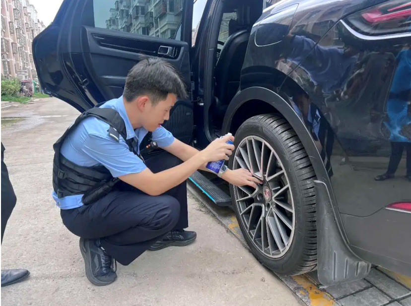 假期第一天,李志豪在辖区的大街小巷巡逻,当警车行驶到路口时,一辆打着双闪的私家车引起了李志豪的注意,李志豪看到车尾蹲着一家三口。李志豪便下车询问,原来,一家三口准备回老家陪父母吃团圆饭,不料中途意外爆胎。李志豪立刻从警车后备箱拿来工具,和同事一起将备胎换上。