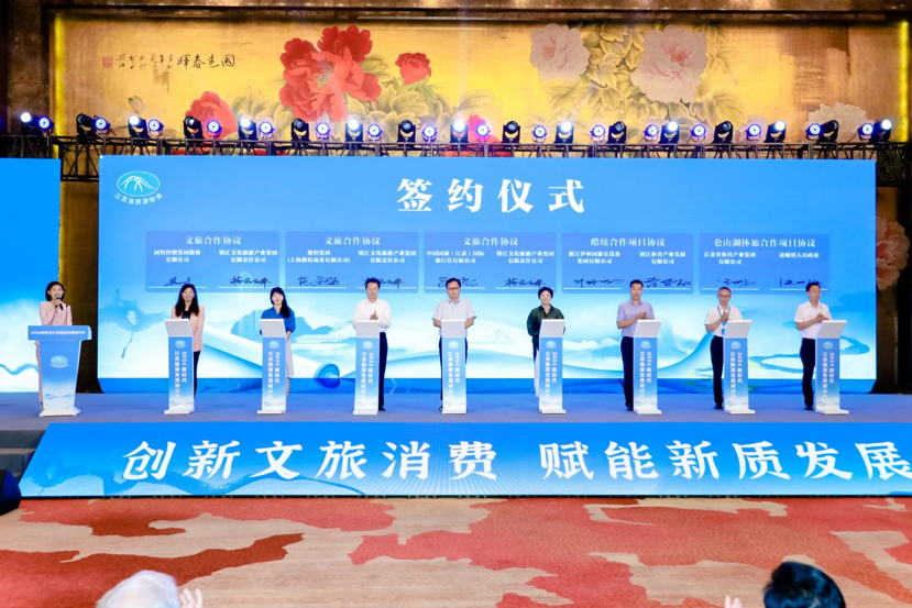 携程集团、同程集团、江苏国旅分别与镇江文旅集团签约合作协议,镇江市体产公司、浙江伊甸园游乐设备集团签约酷炫运动项目合作协议,江苏省体产集团与句容市边城镇签约仑山湖体旅项目合作协议