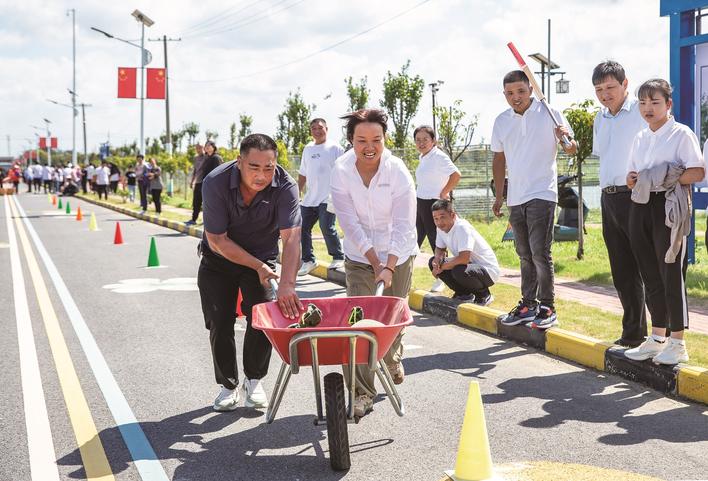 第七个中国农民丰收节南通活动在这里举行。现场不仅举办了群众庆祝丰收联欢活动,还设立了农趣十足的体育活动。