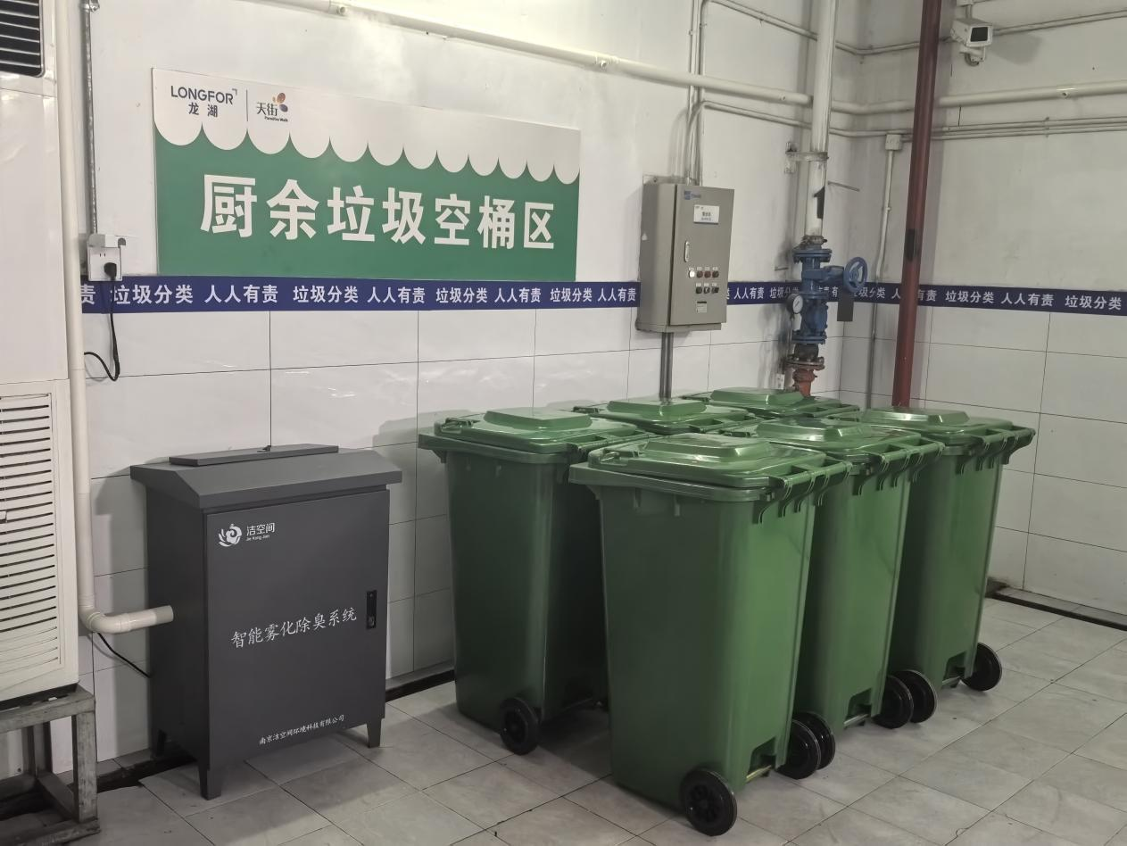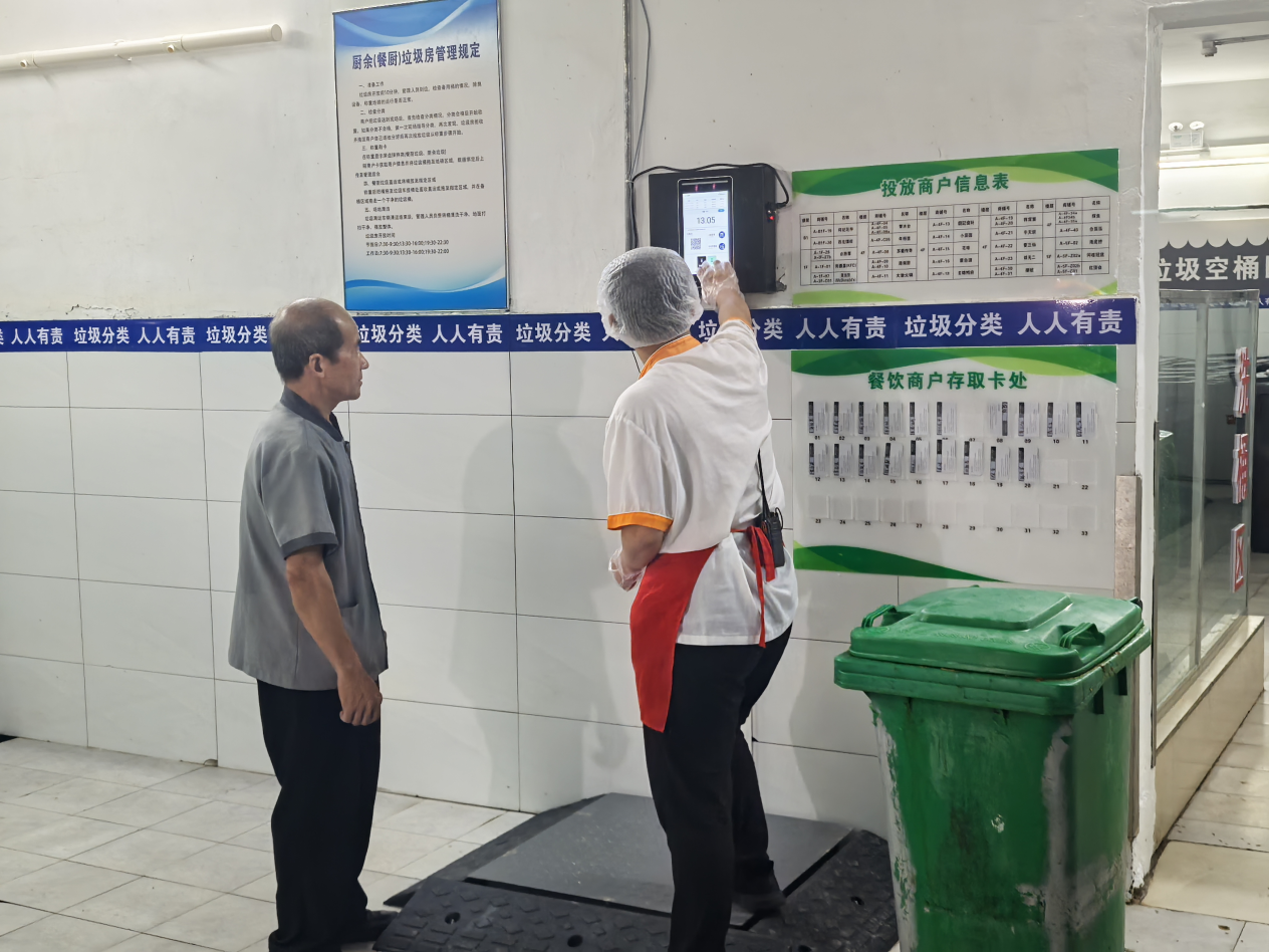 经过前期对区内商业综合体摸排梳理,结合人流量、客户群体、基础设施等多种因素,六合区城管部门选定龙湖六合天街打造商业综合体垃圾分类样板间。据悉,该综合体内共有44家餐饮商户,其中部分中大型餐饮厨余垃圾产生量较多。本次样板间打造,在满足分类收集点四分类投放需求的基础上,通过引入智能称重设备,安装除臭设施、出新地坪等,提升商户投放体验感;统一制作标有商户名称的卡片,对应商户刷卡投放厨余垃圾并称重计入系统,对未正确分类投放的商户实现精准溯源,督促商户自觉分类投放,养成垃圾分类习惯。