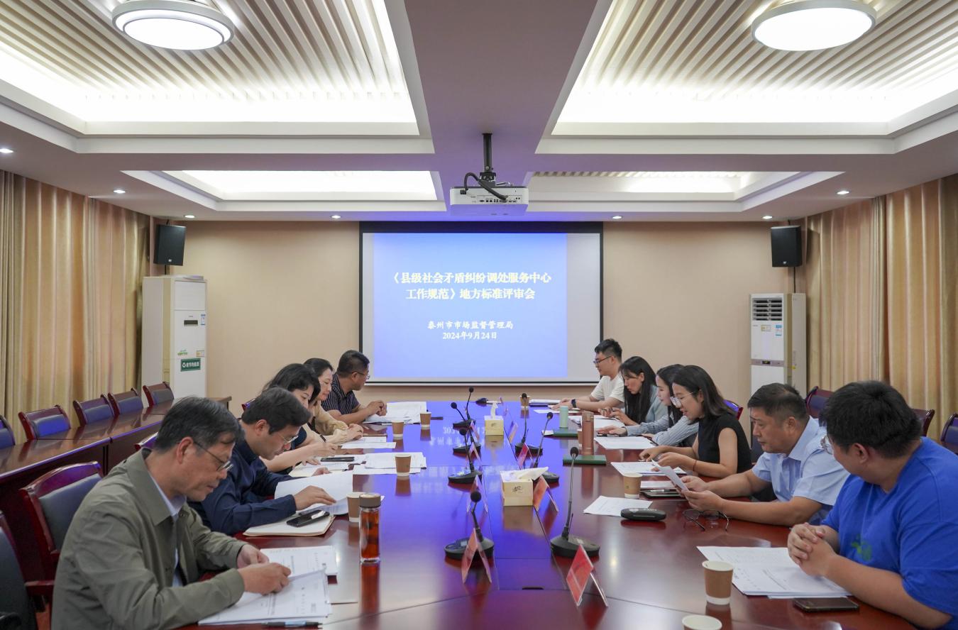 9月24日下午,泰州市市场监督管理局召开地方标准专家审查会,由泰州医药高新区(高港区)司法局起草的《县级社会矛盾纠纷调处服务中心工作规范》通过专家评审。