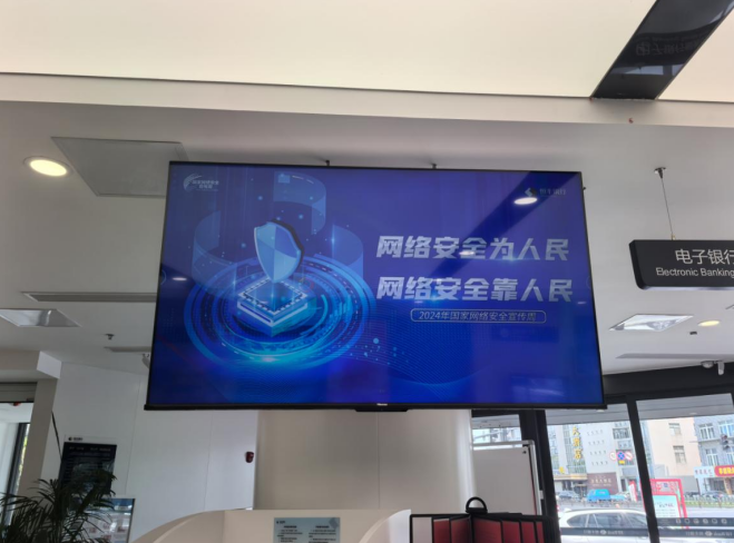 金融行业作为网络安全的重点领域,网络信息安全尤为重要。活动期间,恒丰银行南京分行充分利用线上线下多元渠道,通过营业网点LED滚动屏、显示屏全覆盖、多频次播放宣传内容,在厅堂搭建宣传展台,集中展示网络安全重要法律法规、个人信息保护、防范新型电信网络诈骗、电信网络诈骗案例、预防诈骗常识等宣传海报、手册,发放宣传折页,进一步增强社会公众网络安全意识和技能。