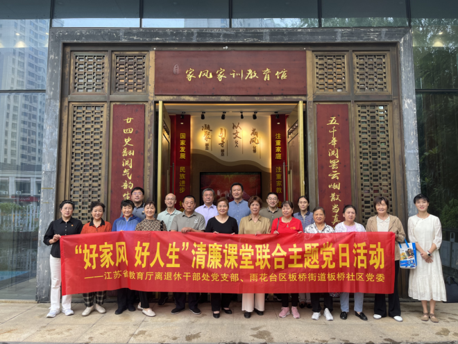 近日,江苏省教育厅离退休干部处党支部全体党员与雨花台区板桥街道板桥社区党委部分党员、社区党员和群众代表共赴雨花台区古雄街道古雄社区家风家训教育馆,开展“好家风 好人生”清廉课堂联合主题党日活动。