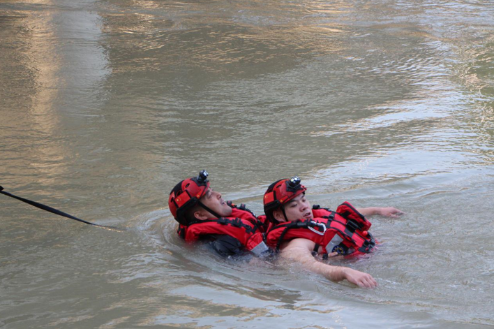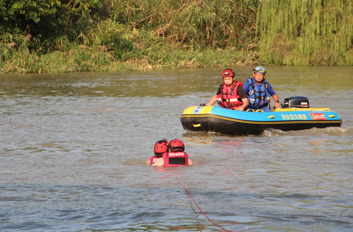 理论学习结束后,教员通过开展岸际抛圈抛绳救援、活饵救援、激流救援时的入水方式、游泳救生技巧及心肺复苏等科目示范教学,帮助参训队员树立科学安全的施救理念,掌握规范系统的处置方法。现场参训人员严格按照操作规程,对救生圈、救生绳等水上救援工具进行实际操作,认真学习救援操作技巧,揣摩动作要领,有针对性地对模拟人员落水后快速开展营救进行实操。