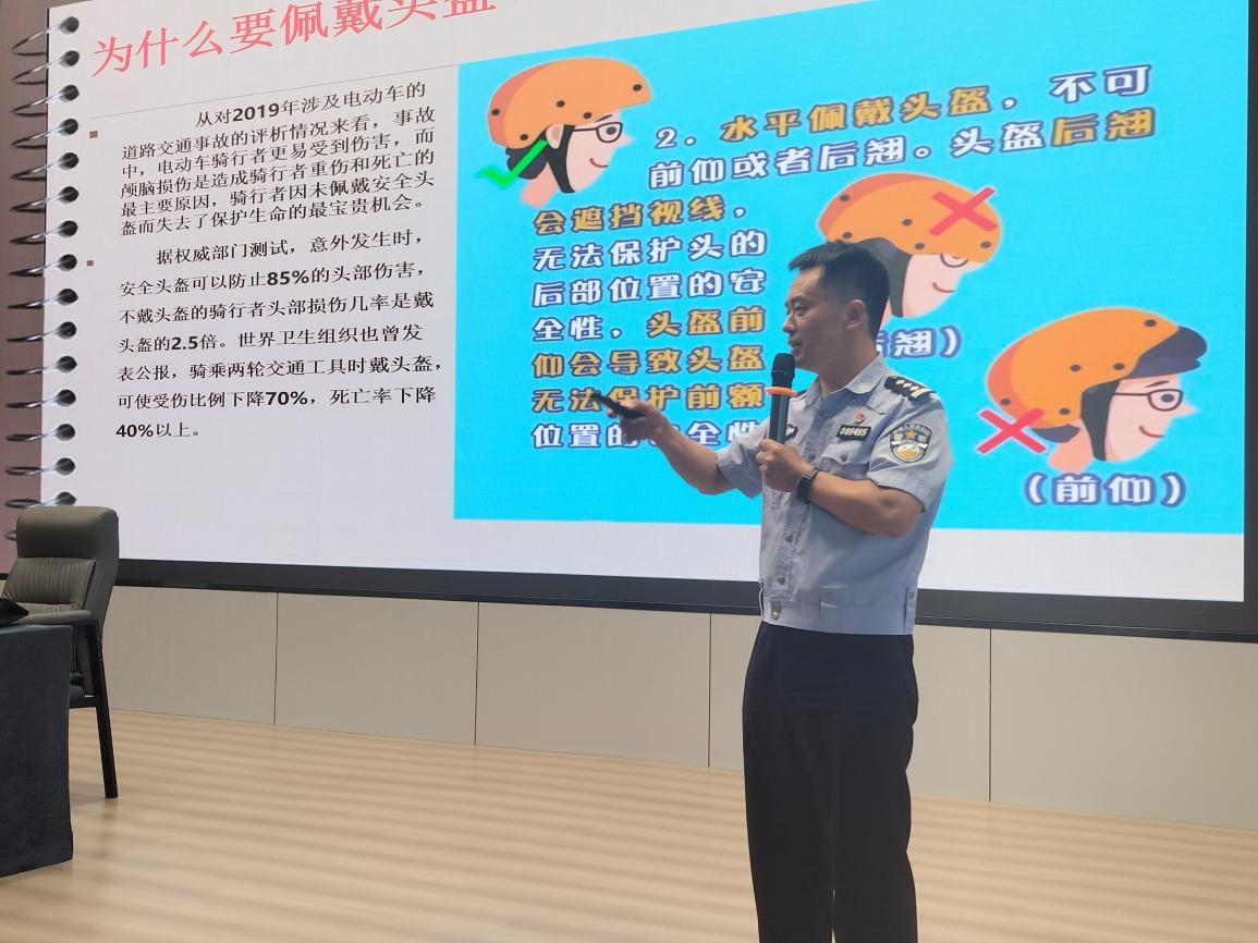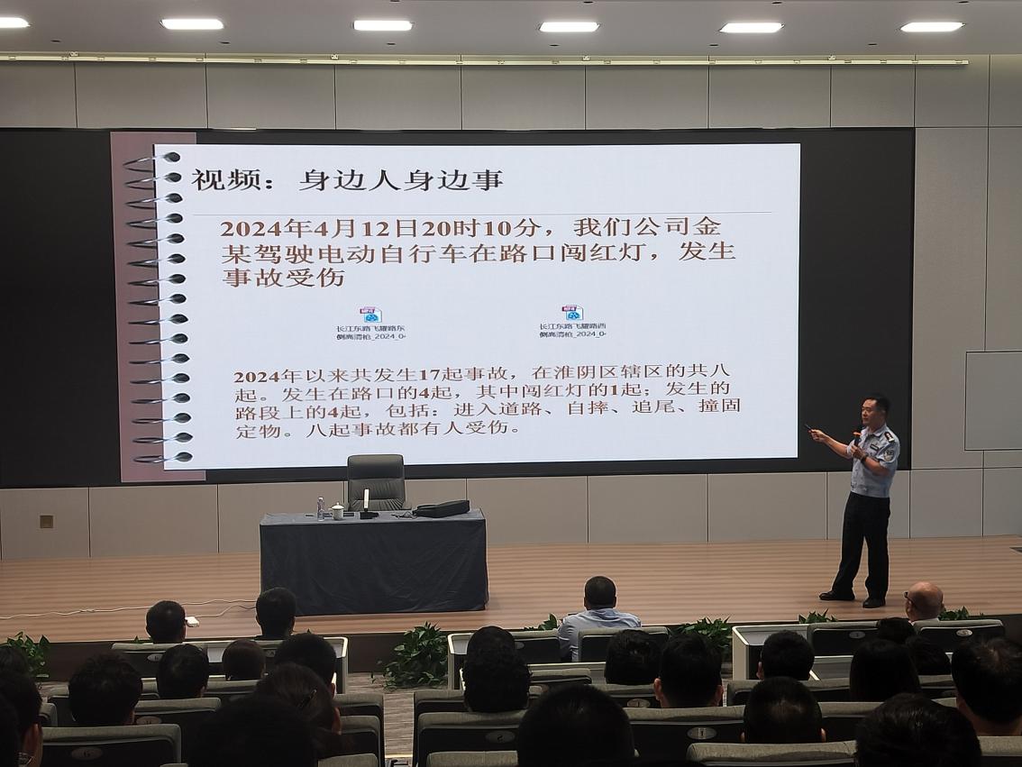 近日,淮安市公安局淮阴分局交警大队走进辖区企业江苏纽泰格科技集团股份有限公司,通过讲座的形式开展交通安全宣传活动。