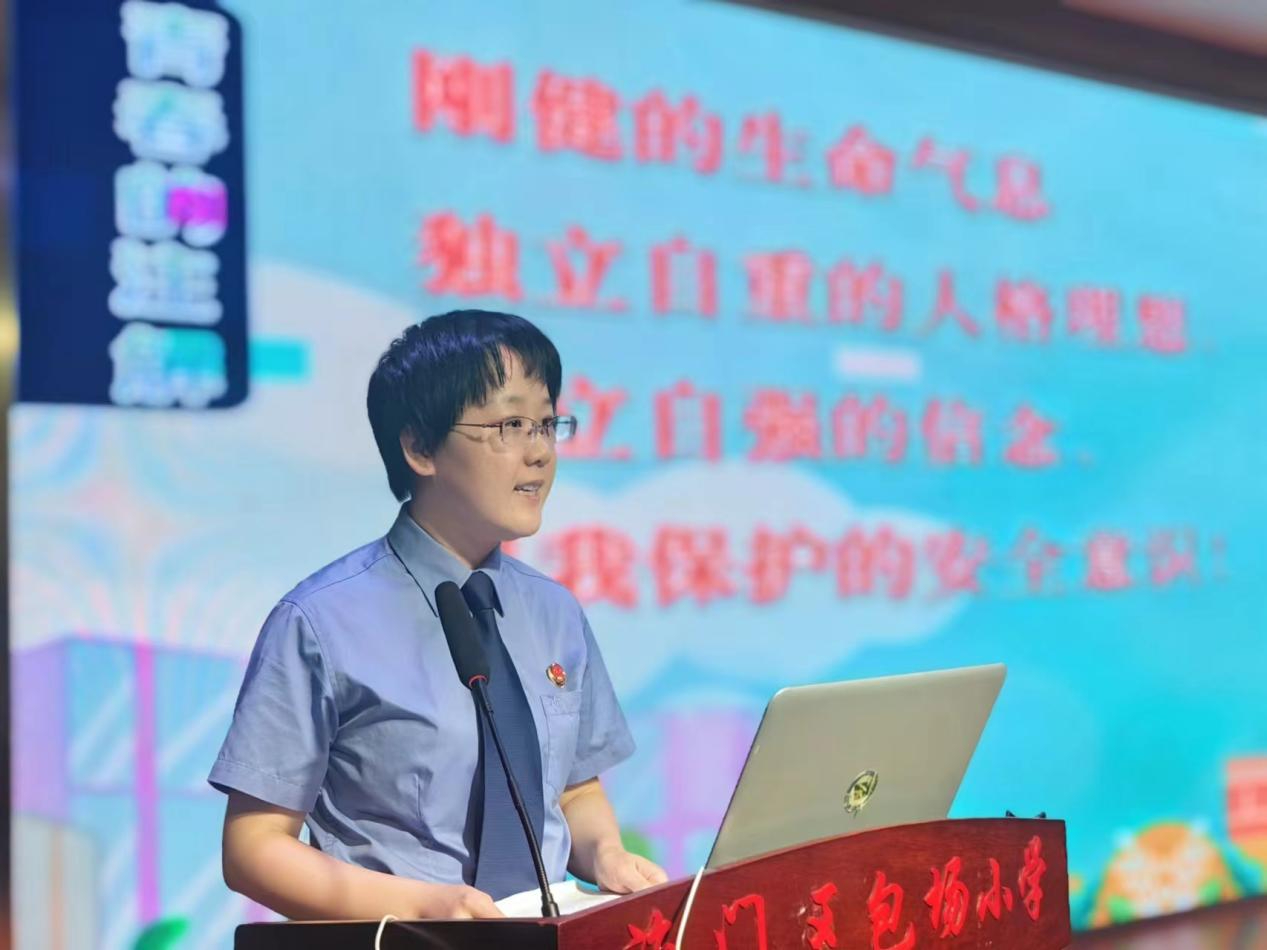 在海门港新区实验小学,面对五六年级的女同学,海门区检察院机关党委专职副书记施珊珊从日常生活到网络环境等不同场景,解析女孩可能遇到的安全隐患,并提出实用的防范技巧。
