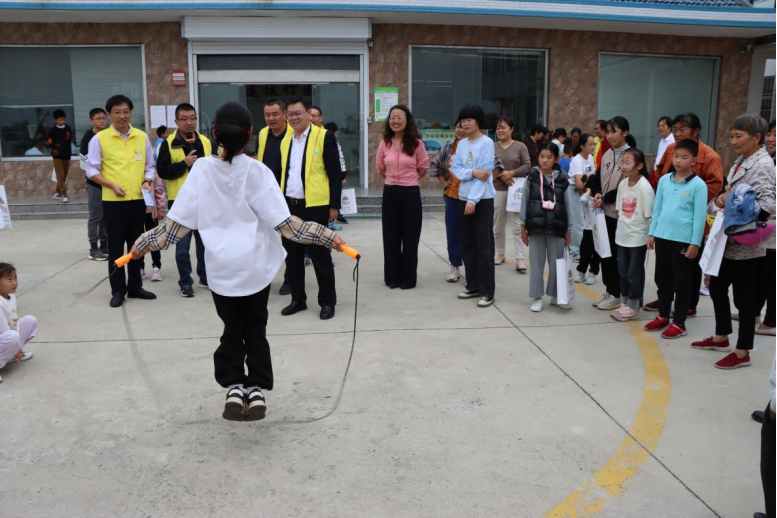 如东县教师发展中心办公室主任朱海燕以智慧的话语为小学生朋友们进行阅读与写作的指导,孩子们听得专注投入,并积极参与现场互动。县少年业余体育运动学校副校长王红蕾声情并茂地讲述了袁庄籍运动员袁吕雯的成长故事,大家看到了运动员赛场上的飒爽英姿,以及上进拼搏的成长历程。县教体局体育科副科长徐本如则为大家带来别开生面的体育知识抢答,孩子们的小手挥舞,眼神中闪烁着渴望与热情,抢答声此起彼伏,欢快的乐章不断在活动现场奏响。县教体局体育科罗新建老师,为家长朋友们带来了健康生活指导,让健康种子播撒在家长们的心田。趣味跳绳比赛开始了,在罗新建老师现场进行花样跳绳示范后,孩子们都跃跃欲试,绳子在空中快速划过一道道优美的弧线。