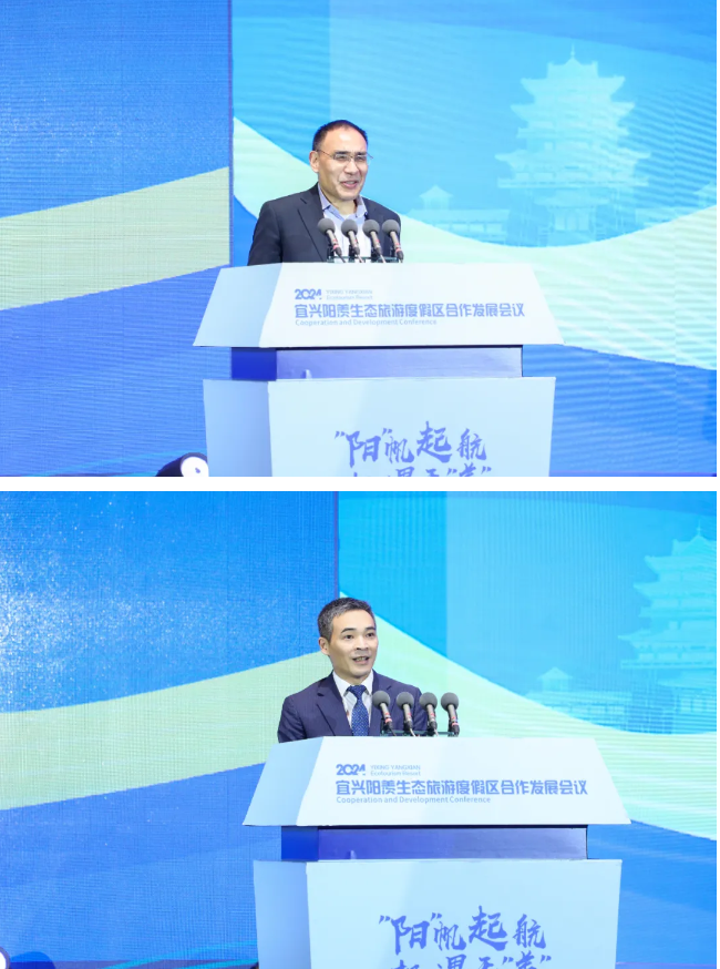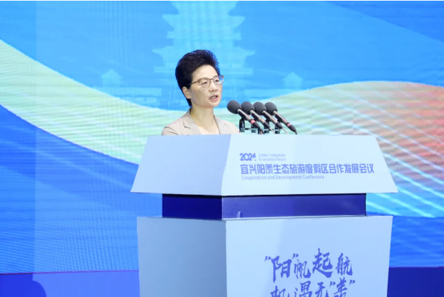 宜兴市委副书记、政法委书记沈晓红在致辞中说,阳羡生态旅游度假区是宜兴最年轻、最富朝气的国家级园区,也是全市旅游发展的核心区引领区,具有便捷的地理区位、秀美的自然风光以及完整的旅游产业链。自成立以来,全区上下锚定“建设国际知名、国内一流生态旅游度假区”的目标,聚力打造文旅胜地、构筑产业高地、建设科创源地,发展势头如雨后春笋一般,呈现出不断攀高的拔节之势。度假区合作发展会议是宜兴金秋经贸洽谈会的重要篇章,也是度假区强化推介宣传、打响区域品牌的重要抓手。随着新一批产业合作基地的揭牌,新一批产学研机构的成立,新一批重大项目的签约,度假区将迎来更加不可限量的美好未来。她希望,度假区要以此为契机,进一步扩大朋友圈、织密合作网、充实资源库,以更开放的姿态、更优惠的政策、更优质的服务,让广大在宜、来宜企业安心发展、互惠共赢。