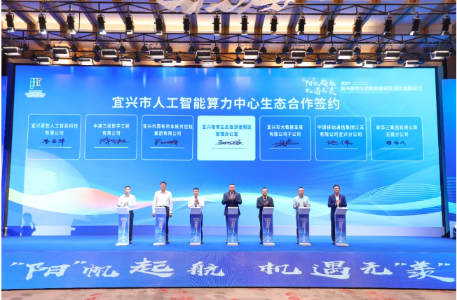 围绕该项目,活动现场举行了宜兴市人工智能算力中心生态合作签约仪式,度假区、市国控集团、市大数据公司、中建三局数字工程公司等单位将在智慧城市、人工智能等前沿领域进行产业合作。