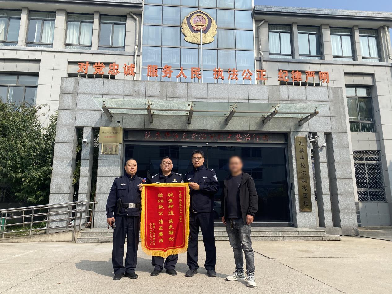 韩先生对此深表谢意:“真是太感谢两位警官了,报警后不久就告知我电动车已经找回,效率真是太高了!”他特地定制了锦旗,并于16日上午送至派出所,向两位民警当面致谢。