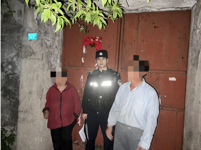 在经过两个小时的走访、查阅监控、在社区工作群内发布老人消息等工作下,终于有一商店老板认出了老人,在其帮助下民警成功联系上老人家属并驱车将其平安送回家中。