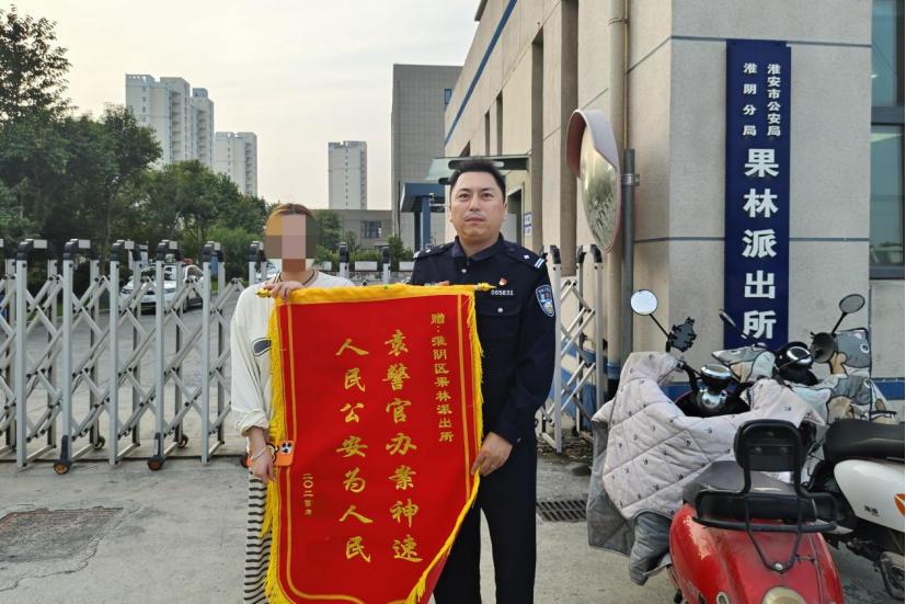 “太感谢袁警官的帮忙,帮我把车追回来,太谢谢你们!”10月18日下午,严女士来到淮安市公安局淮阴分局果林派出所,将一面印有“人民公安为人民,袁警官办案神速”的锦旗送到民警袁晖手中,感谢民警及时帮其找回汽车,挽回损失。