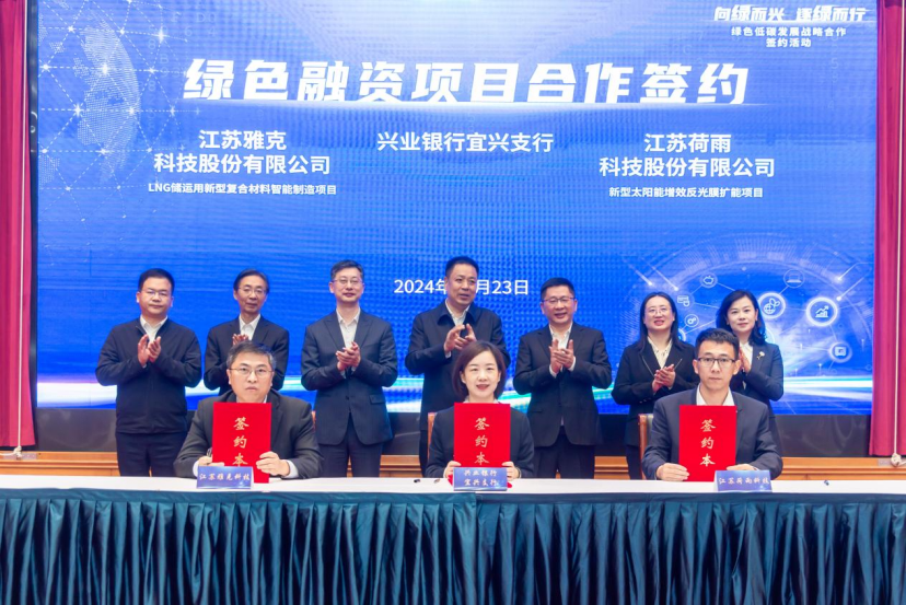 兴业银行宜兴支行与江苏雅克科技股份有限公司、江苏荷雨科技股份有限公司签订银企合作协议