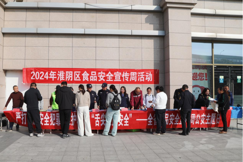 为进一步普及食品安全知识,积极营造食品安全社会共治的良好氛围,10月30日上午,淮安市公安局淮阴分局食药环侦大队联合淮阴区市场监管局、农业农村局等相关职能部门深入辖区大润发超市,在超市南广场开展以“严打食品安全犯罪 维护群众‘舌尖上的安全’”为主题的2024年食品安全宣传周活动。