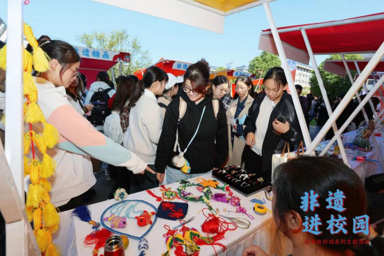 校园里文化气息浓厚,市集区各种非遗展品琳琅满目,从精美的花灯、栩栩如生的糖画到古朴典雅的皮影,每一件作品都蕴含着匠人的心血和智慧。学生们行走其间,纷纷打卡体验,非遗技艺传承人现场讲述这些传统技艺的历史背景和制作过程,让学生沉浸式感受非遗的独特魅力。