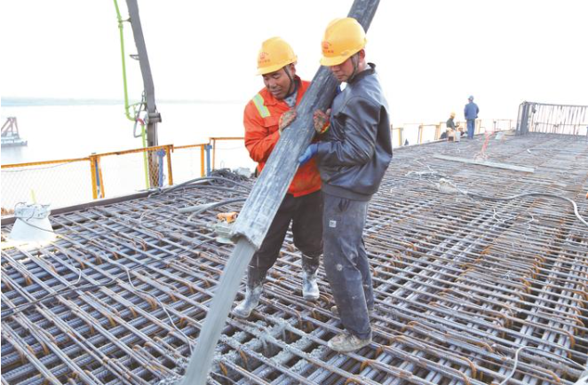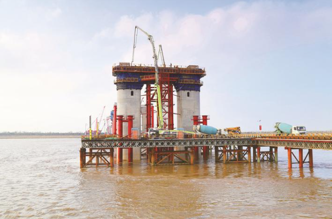 昨日15时15分,随着最后一车混凝土浇筑,由中铁大桥局承建的沪渝蓉高铁沪宁段V标崇启公铁长江大桥主桥S5号墩盖梁成功浇筑,标志着大桥水中第6座门式桥墩建成,水中桥墩完成过半。