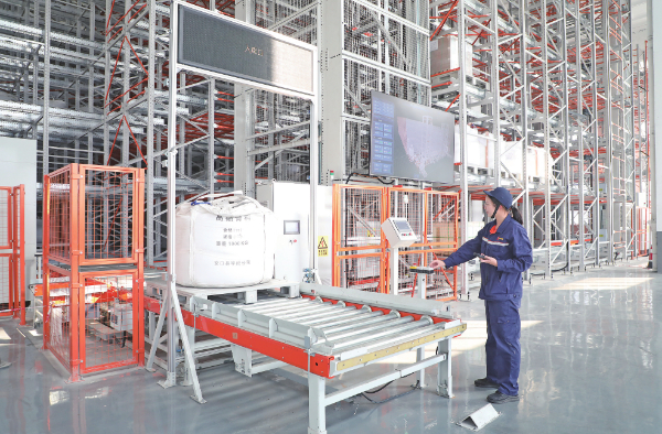 图为11月4日,工作人员在今年9月投用的智能立体仓库里忙碌。