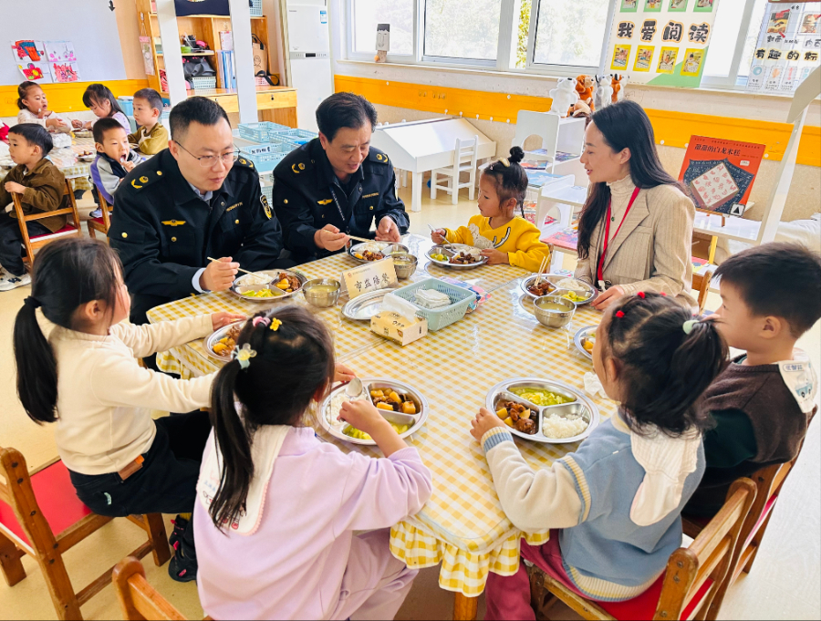 11月5日中午,阜宁县市场监管局城中、城北、吴滩三家分局的执法人员分别走进辖区内的三所幼儿园食堂与在园老师、小朋友们一同就餐,亲身感受幼儿园食堂餐饮质量,全面检查幼儿园食品安全一线情况。实现从原料进货到成品入口的学校食堂食品安全的全链条监管,让师生们在学校食堂吃得放心、安心。