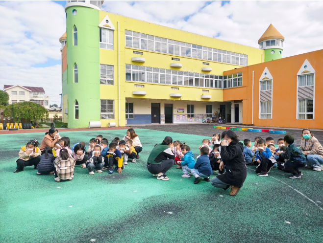 随着警报声响起,带班教师们立即组织小朋友们迅速撤离,其余教师按照分工要求在指定位置积极做好指引疏导工作。小朋友们用湿毛巾捂住口鼻、低头弯腰,从指定逃生路线迅速有序撤往指定集合地点。