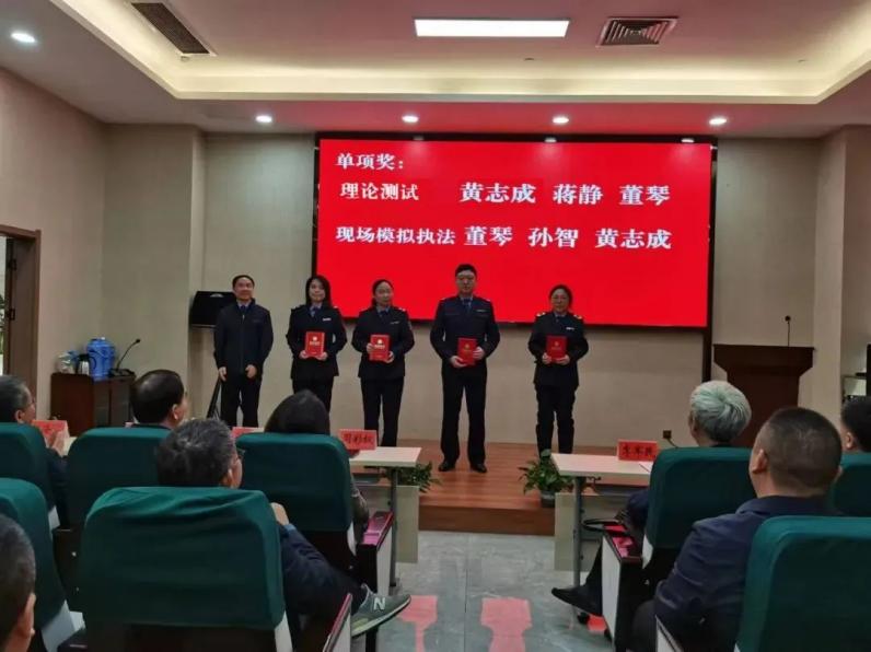 此次竞赛包括理论知识测试和现场模拟检查执法等内容,盐城全市共有10支队伍30名选手参赛,竞争异常激烈。大丰区代表队3名选手凭借过硬的专业技能和辛勤训练在比赛中脱颖而出,取得了优异成绩。大丰区卫生健康委员会喜获团体一等奖。大丰区卫生监督所黄志成、董琴、蒋静分别喜获个人一、二、三等奖;黄志成、蒋静、董琴还分别喜获理论测试单项奖第一、二、三名;董琴、黄志成喜获现场模拟执法单项奖第一、第三名。