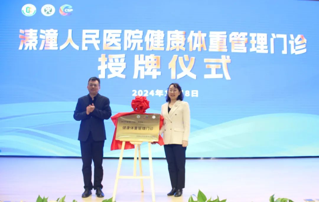 区文体广电和旅游局局长黄海晏与东南大学附属中大医院内分泌科主任医师、临床营养科主任,硕士研究生导师金晖教授共同为“健康体重管理门诊”授牌,领导、专家共同点亮姜堰区体卫融合项目启动仪式屏幕。
