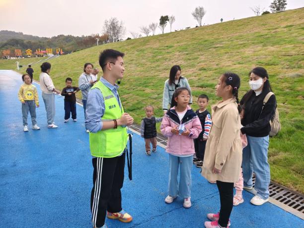 双方合作的阵地在象山湖大坝和背水坡,在溢洪道、启闭机房、环湖栈道都设有志愿者,定人定岗,进行文明劝阻和线路引导。在大坝中间设有互动展位,策划节水飞行棋、横幅创作、生态瓶DIY等互动游戏。在背水坡象水廊设有志愿讲解人员,为过往的群众介绍浦口的水知识、节水常识等。现场营造浓厚的科普氛围,优质的服务吸引了众多市民尤其是青少年驻足参与,加深了对幸福河湖的体验和理解。目前已开展“守护绿色家园,共筑生态未来”“寻访绿水青山,共护水美浦口”等丰富多彩的活动6次,累计覆盖400多人次。