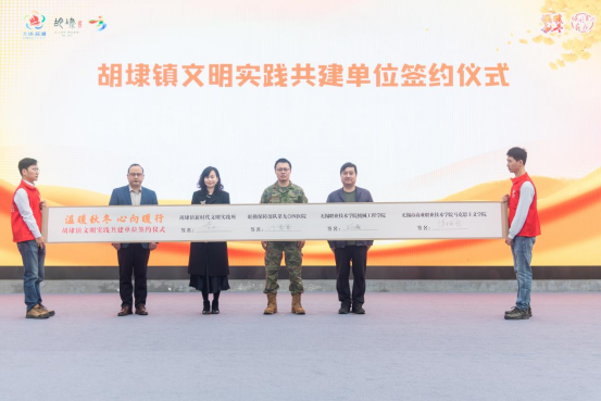 活动现场,胡埭镇新时代文明实践所与联勤保障部队第九〇四医院、无锡职业技术学院机械工程学院、无锡商业职业技术学院马克思主义学院携手合作,共同签订文明实践合作共建协议。现场还为来自共建单位的三位专家学者颁发新时代文明实践志愿领航员聘书,他们将用各自的专业知识,带领志愿服务团队加入到志愿服务行列,共同推进新时代文明实践活动深入开展。