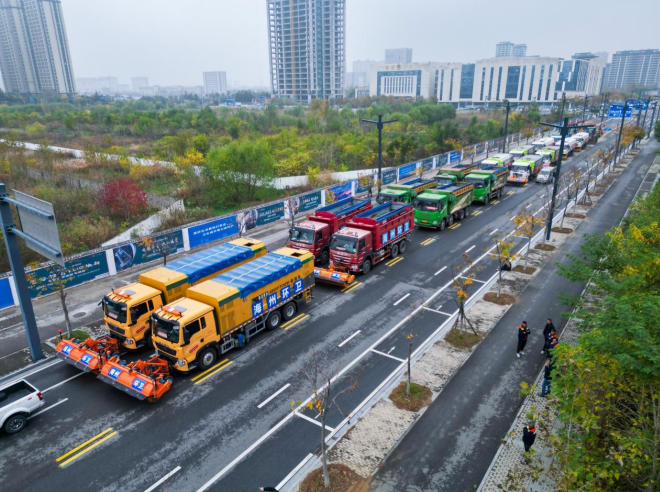 日前,连云港市城管局为确保冬季扫雪除冰工作平稳有序,未“雪”绸缪,牵头各职能部门、应急单位,在海州区文苑路开展扫雪除冰作业现场演练。