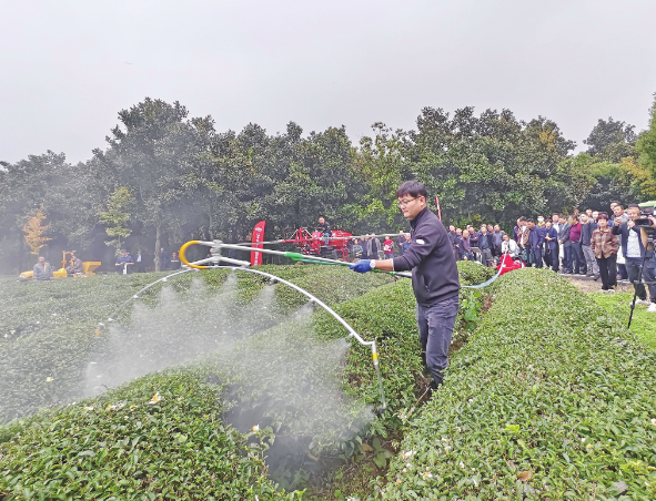11月15日,市农业农村局在市御茶农林生态园举办市茶叶种植农机农艺融合现场观摩活动,吸引全市茶叶种植大户及各镇(街道)相关工作人员参加。活动旨在通过展示茶园机械化生产工具和全程机械化生产技术,推动我市丘陵山区小型机械的研发、制造及应用,提升茶园生产机械化水平。图为活动现场。