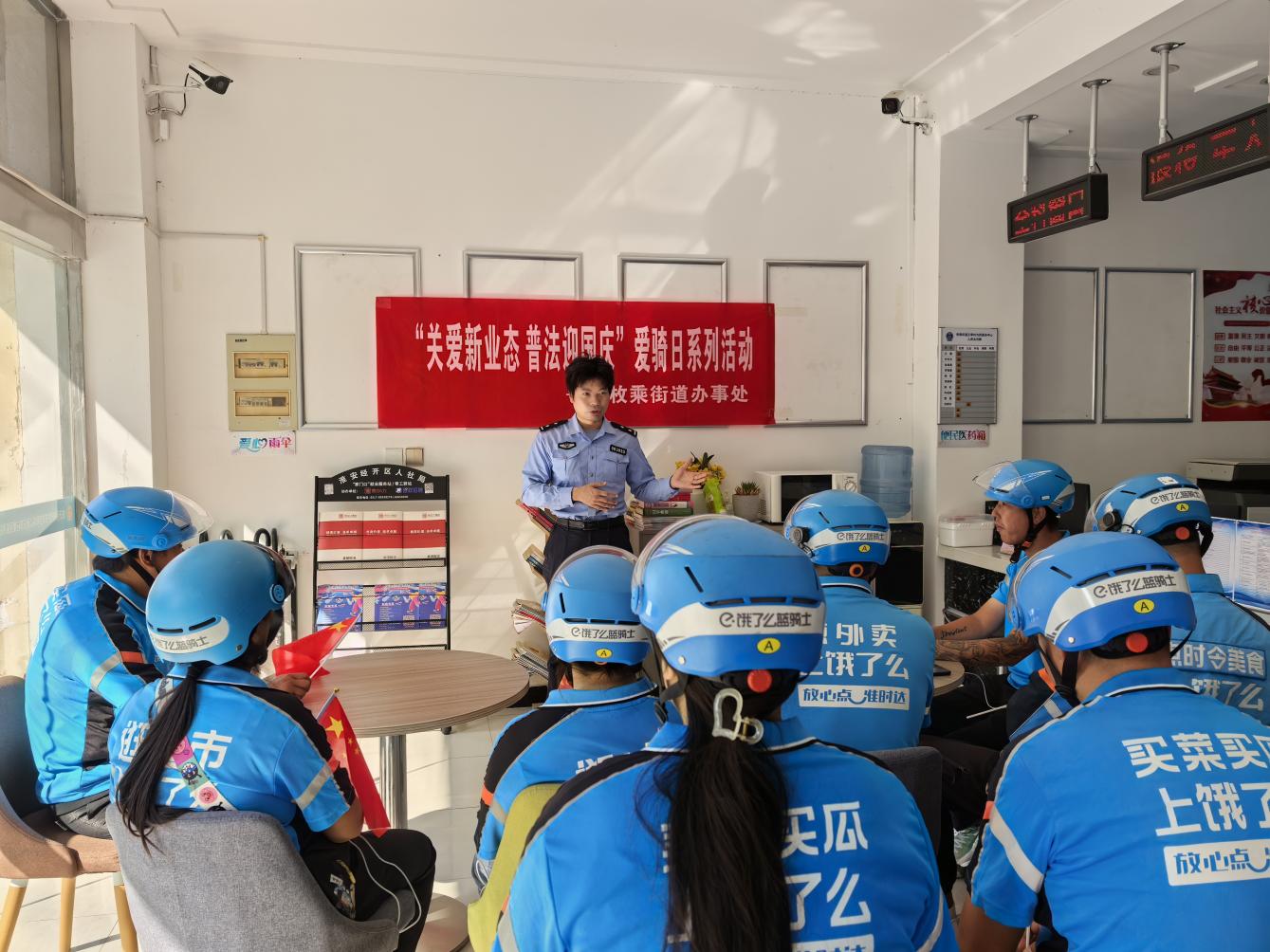 普及交通法规,保障出行安全。为进一步提高快递员、外卖员等“两新”群体的交通安全意识,枚乘街道组织开展交通安全教育专题培训会,通过讲解骑乘电动车不戴安全头盔、随意变更车道、闯红灯、逆行等不文明交通违法行为的危害性,增强了快递员、外卖小哥遵纪守法的自觉性,提高了他们正确规范使用安全头盔的意识,为创造规范有序的道路交通环境起到了积极的作用。