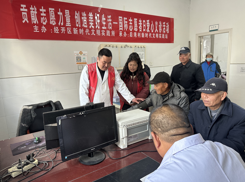 “爹爹,您的血糖数值有些高,建议您到医院进一步检查一下。”活动现场,辖区村民们有序地排队,医务志愿者为每一位村民提供免费量血压、测血糖、健康咨询诊断等服务,耐心地询问村民身体状况,解答村民的各种疾病问题,并针对村民的健康状况给予详细诊疗意见和个性化健康指导。