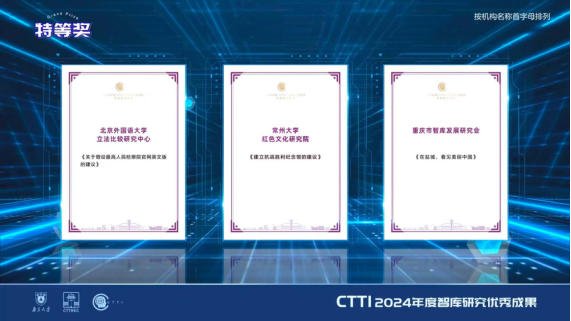 图为朱成山教授重要咨询报告获评CTTI2024年度智库研究优秀成果特等奖