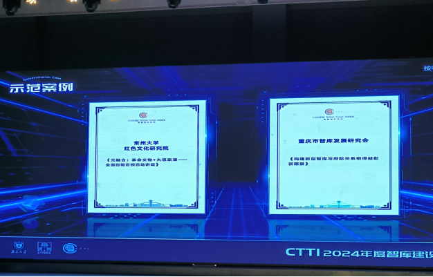 11月30日,在兰州大学举办的“2024年度新型智库治理论坛”上,江苏省重点培育智库——常州大学红色文化研究院入选CTTI来源智库名单,并获得2024年度智库研究优秀成果特等奖和智库建设示范案例两项奖励。