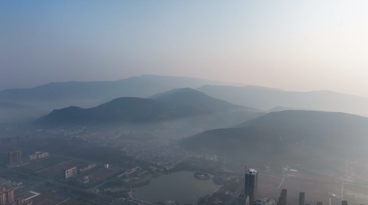 12月6日上午,连云港市东海、灌云、灌南、海州、赣榆、连云、经济开发区、徐圩新区、云台山风景区和东辛农场等地大部分镇(街道)出现能见度不足500米、局部不足200米的浓雾和强浓雾,从高空俯瞰,大雾笼罩下的高山、高楼若隐若现,整个城市如在云端,出现“海市蜃楼”般的奇观。 (沙芳如 于涛)