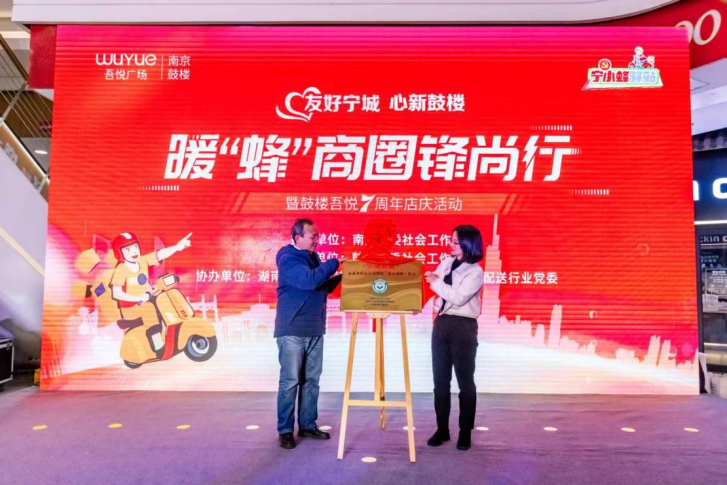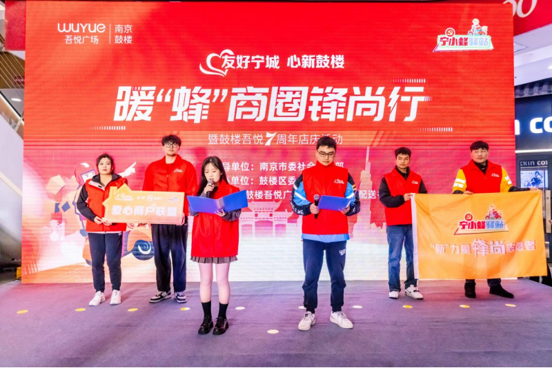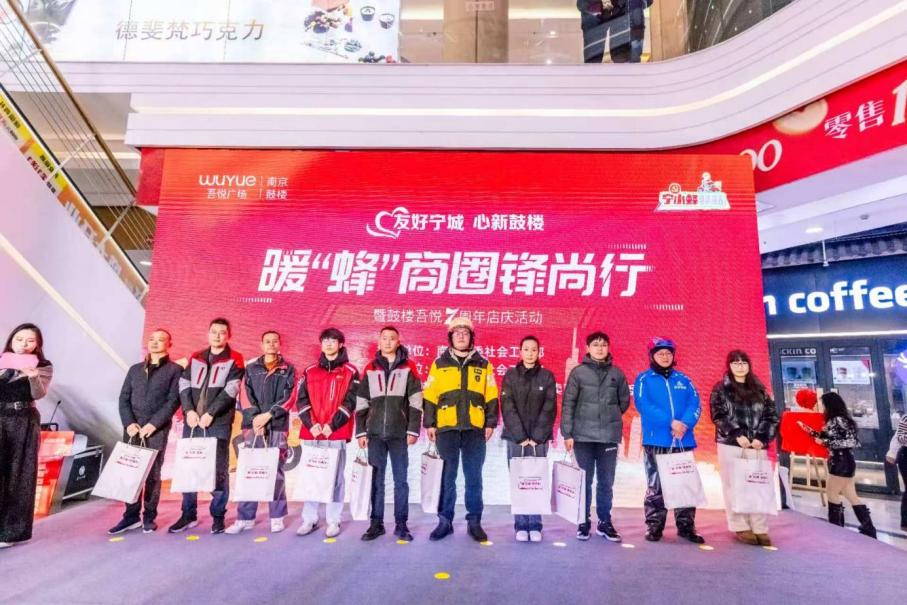 12月11日,“友好宁城·心新鼓楼”暖“蜂”商圈锋尚行活动在南京鼓楼吾悦广场举行。市委社会工作部“两新”工委办公室、区委社会工作部、湖南路街道、鼓楼吾悦广场相关负责同志,区委组织部、外卖配送行业党委、互联网行业党委及部分“两新”工委成员单位、各街道分管负责同志,外卖快递、网约车、网络直播等行业新就业群体代表,及部分商贸综合体负责人、爱心商户代表等60余人参加活动。