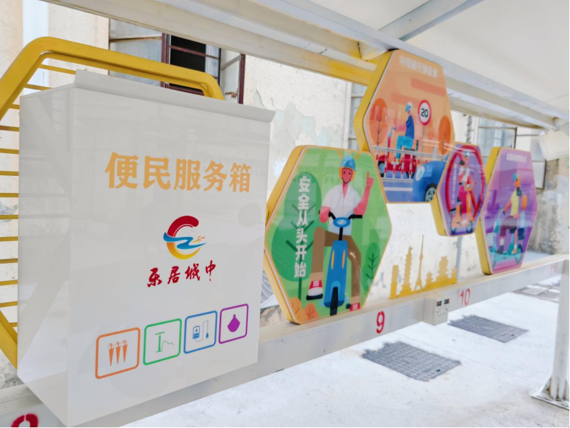 民需不虚,服务全方位。“遇到车胎没气,这里就有打气筒可以救急用,非常方便。”居民陈桂英说。为更好地服务居民,社区还设置了2处便民柜,免费提供打气筒、雨伞、雨衣等应急物品,方便居民“随取随用”。为提升美观性,在设计上,融和“乐居城中”党建品牌,布置了主题突出、形象生动的文化墙及阅读手册等。此外,由网格员担任组长,发动党员,组建36人的“充电合伙人”小组,定人、定时段负责各点位日常维护、使用教学、有序引导等,同步张贴服务电话,让群众问题能够得到及时反馈与解决。