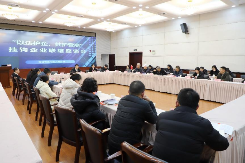 为进一步延伸司法服务触角,增强辖区挂钩企业的法律意识,更好地为民营经济发展壮大提供优质司法服务保障,12月27日下午,海门法院组织开展“以法护企,共护营商”挂钩企业联络座谈会。海门法院党组书记、院长杜开林,党组副书记、副院长黄燕,海门区工商联党组成员、副主席陆玟瑾,海门区劳动人事争议仲裁院副院长侯振华等出席活动,12名企业代表应邀参加。