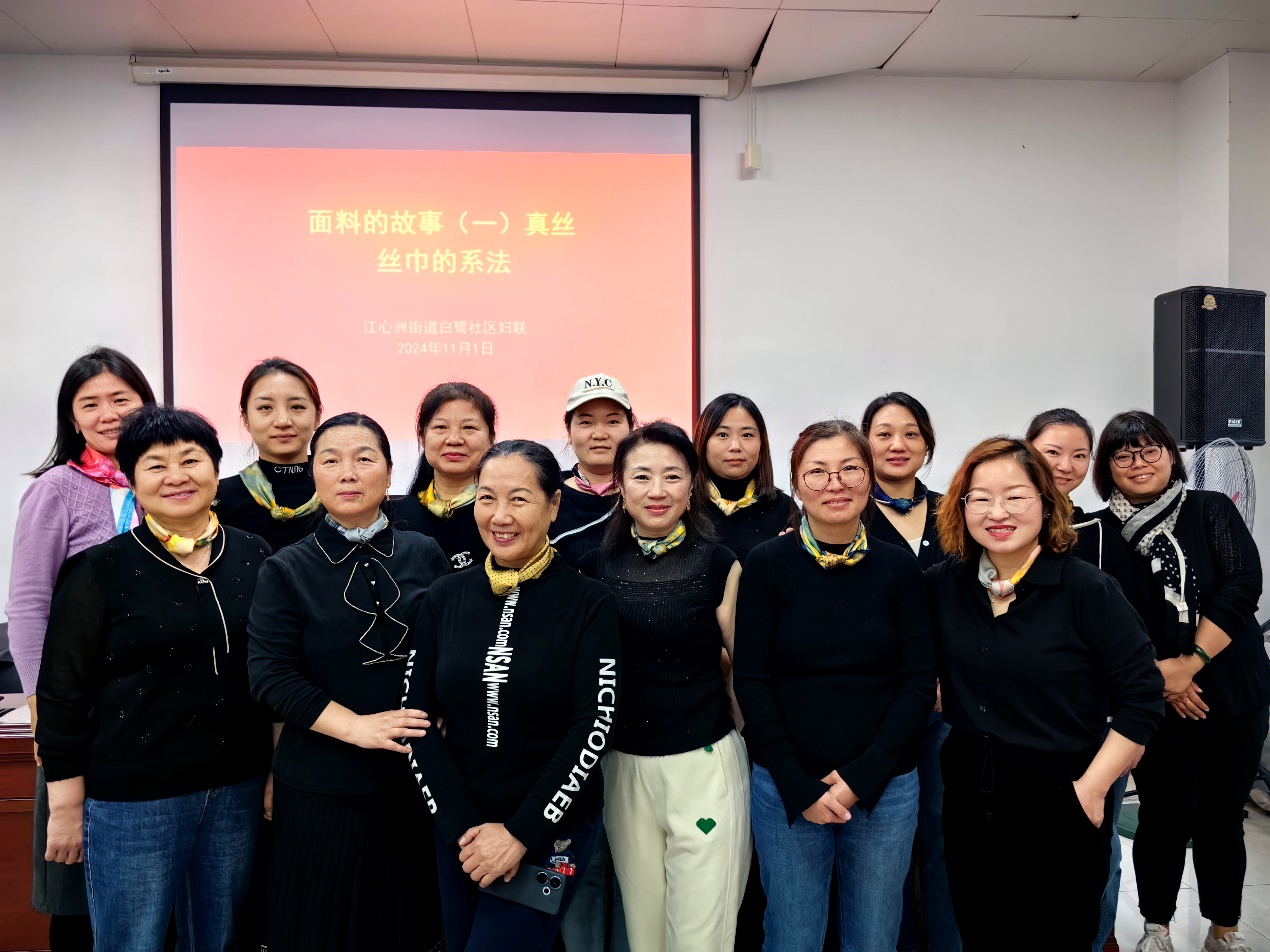 在真丝面料知识与丝巾系法的活动中,专业老师将真丝面料的奥秘娓娓道来,从其独特的特点到精准的鉴别方法,再到贴心的保养技巧,一一道来。同时,老师还亲自示范了多种丝巾系法,让大家不仅充实了知识储备,更能在日常搭配中展现出独特的魅力与风采。