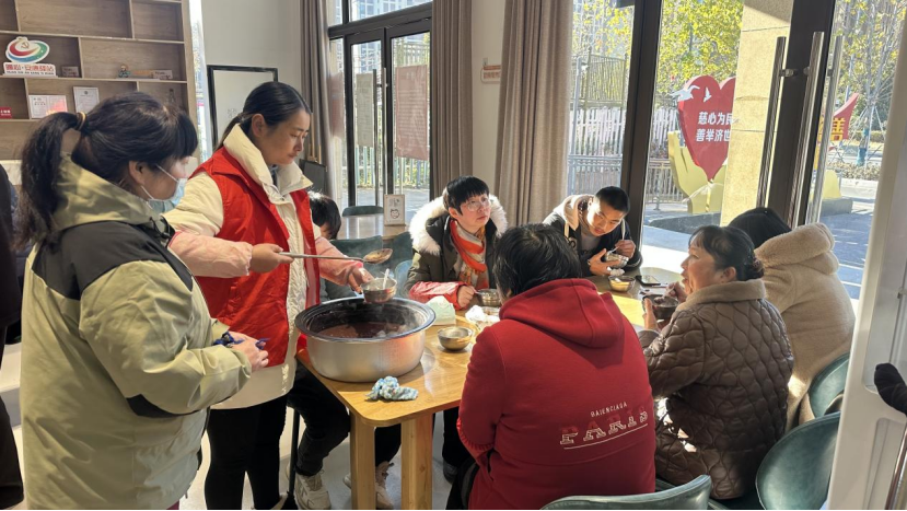 活动当天,德惠“长者幸福食堂”的志愿者们一大早就煮好了一大锅腊八粥,有红豆、薏米、花生、红枣等多种食材。社区网格员和志愿者一起将一碗碗热腾腾的腊八粥递到特殊人群与辖区居民的手中。现年87岁的郭奶奶接过志愿者手中的腊八粥,连声道谢,感叹着当下生活的美好。一碗小小的腊八粥,驱散了冬日里的寒冷,也传递着社区对居民的关爱,同时也传承着中华传统文化。(戴亚君)