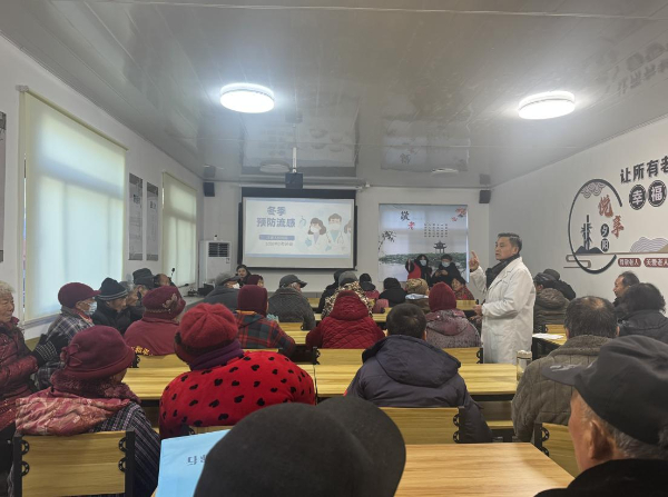 1月9日上午,泰州市姜堰区溱潼镇湖西社区联合溱潼镇人民医院,在社区新时代文明实践站开展冬季流感预防知识讲座。