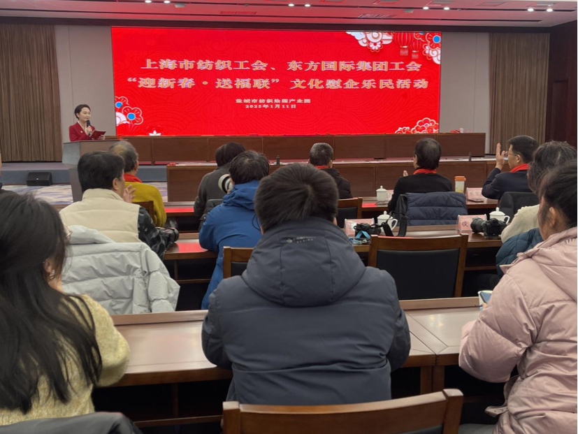 1月11日下午,上海市纺织工会、东方国际集团工会“迎新春·送福联”文化惠企慰民活动在射阳县临海镇纺织科创园举行。