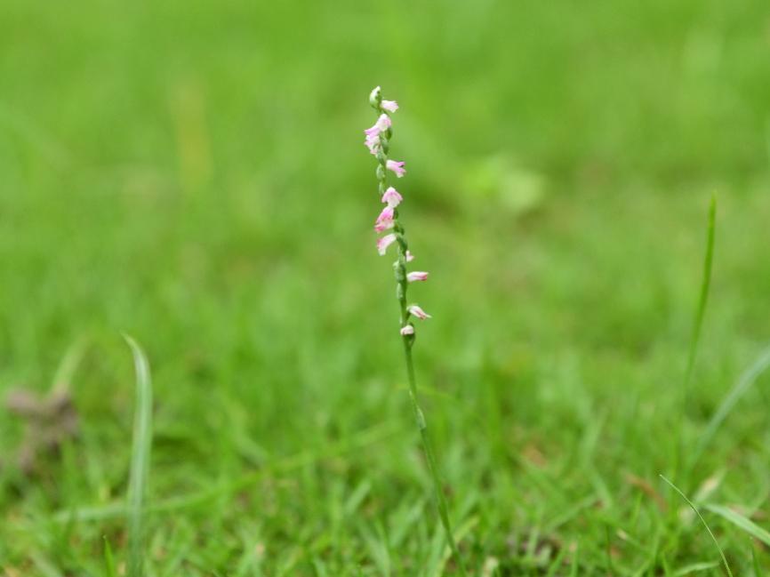 春末夏初的黄金海滩,放眼粉色花海星星点点,定睛细看,原来是绶草悄然开放。绶草花开,螺旋状婉转而上,状若盘龙;根若手指,像参,因此又称盘龙参。绶草是花形最小的野生兰花。纤纤而立,喜欢栖居于草坪之上,但又和频繁的人为活动相冲突,因此变得愈发少见。